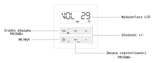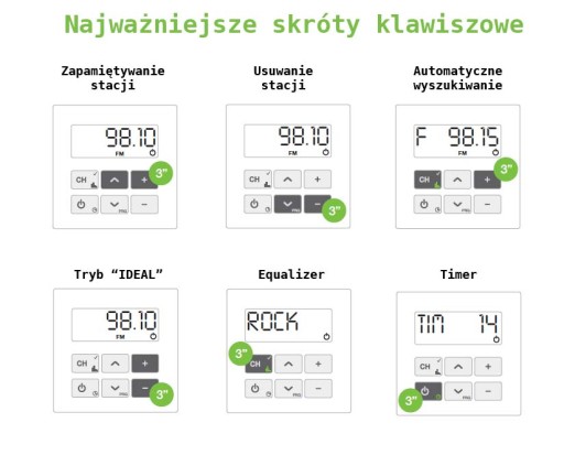 Obsługa urządzenia odbywa się za pomocą przycisków umieszczonych na przednim panelu. Opis najważniejszych skrótów klawiszowych znajduje się poniżej. Ważną dla wielu funkcją urządzenia jest także możliwość ustawienia maksymalnej mocy modułu fm(poziom: niski/średni/wysoki)