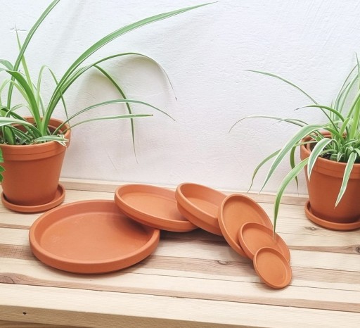 - naturalna podstawka do doniczek z gliny w klasycznym ceglanym kolorze