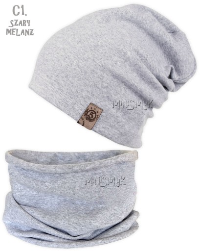 Komplet od firmy MINISMYK w którego skład wchodzi, czapka i tuba/komin.