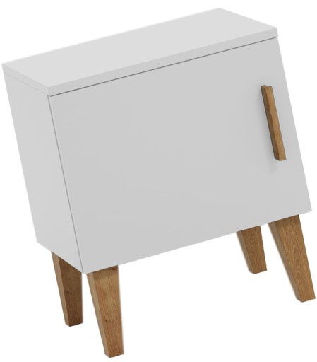 - Kolor: Biały korpus i front, dębowe nóżki.