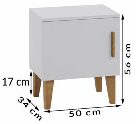 - Wymiary całkowite: głębokość: 34 cm, szerokość: 50 cm, wysokość: 56 cm, wysokość nóżek: 17 cm.