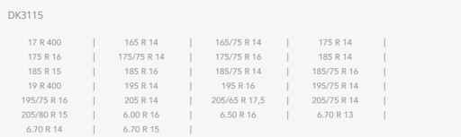 Poniżej koła na jakich znajduje zastosowanie błotnik "bliźniak" o symbolu DK3115: