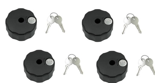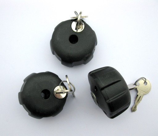 Przedmiotem aukcji są 3 gałki z zamkiem NA TEN SAM KLUCZ do uchwytów rowerowych i innych bagażników w których zwykłą gałkę możemy zamienić na gałkę z zamkiem.
