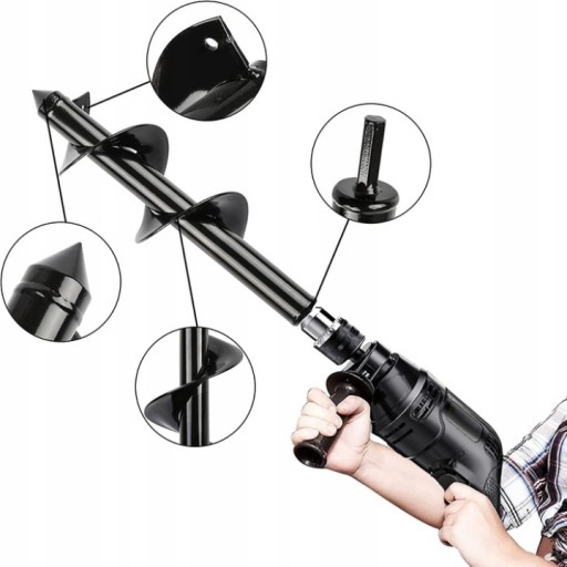 Konstrukcja spiralna ułatwiająca wiercenie w ziemi. Użyj świdra glebowego w odpowiednim terenie przy niskiej prędkości i uśmiechaj się podczas pracy. Otwór można wywiercić w kilka sekund.