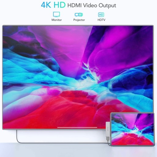 - ▶ 【HDMI do 4K przy 30 Hz】 Ciesz się wyraźnym wideo HDMI na zgodnym telewizorze HD, monitorze lub projektorze, aby uzyskać doskonały obraz o wysokiej rozdzielczości. Wymagają bezpośredniego połączenia HDMI do HDMI. Obsługa 4K przy 30 Hz, 2 K przy 60 Hz, 1080 p przy 60 Hz. Idealny do bezproblemowych prezentacji, połączeń konferencyjnych i przesyłania strumieniowego wideo w podróży! (Uwaga: 2K przy 60 Hz dla iPada Pro.)