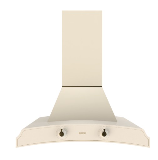 Wzór okapu w delikatnej kości słoniowej lub matowej czerni jest uzupełniony charakterystycznym uchwytem w kolorze starego złota. Tradycyjne pokrętła umożliwiają kontrolę nad okapem i jego funkcjami. Ozdobny uchwyt pasujący do projektu całej kolekcji doskonale uzupełnia wygląd okapu i podkreśla jego klasyczny charakter