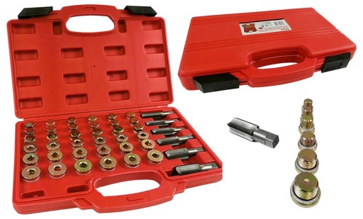 Konstrukcja: gwintowniki jednostopniowe ze stali CR-MO, w każdym rozmiarze 5 szt. korków do miski olejowej oraz 10 podkładek. Po nacięciu gwintu w misie olejowej należy w niej zamontować korek z zestawu.