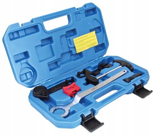 - W zestawie znajduje się m.in. blokada wału korbowego , koła zębatego rozrządu, napinacz koła pasowego , trzpień do wału