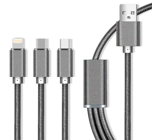 - Kabel marki Maxlife 3w1 ze złączem 8-PIN. Kabel posiada trzy złącza (Micro USB, Typ-C, 8-pin), dzięki czemu jednym kablem możesz ładować wiele różnych urządzeń z jednego źródła mocy. Duży amperaż (2.1 A) zapewnia funkcję szybkiego ładowania, co zaoszczędza Twój cenny czas. Nylonowy splot pozytywnie wpływa na trwałość produktu. Ponadto, kabel jest miękki, bezproblemowo się wygina, dzięki czemu szanse na jego złamanie są znacznie mniejsza niż przy tradycyjnych kablach. Metalowe osłony złącz zwiększają jego odporność. .