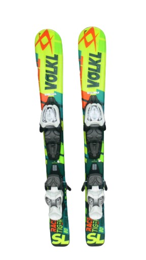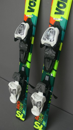 Narty używane dziecięce(nr kat.1/20) VOLKL RACETIGER SL dł. 80cm ; taliowanie 93-67-76 ; promień skrętu 6,6m ; z wiązaniami MARKER4.5(zakres 0,75 - 4,5), na dł. skorupy buta 190 - 278mm.