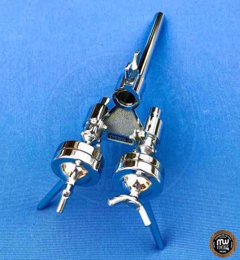 Oryginalny tomholder z lat 70/80 wyprodukowany w Japonii. W komplecie trójnik oraz 2 tomholdery kulowe z długimi szpicami. Stan absolutnie idealny.