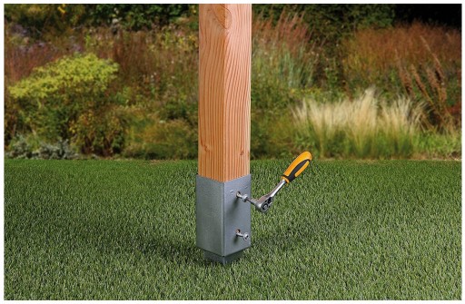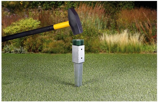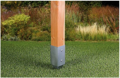 Podstawa wbijana do ziemi wykonana z grubej blachy 2 mm. Pokrycie antykorozyjne: ocynk. Ułatwia budowę altan, palisad, pergol, ogrodzeń itp.