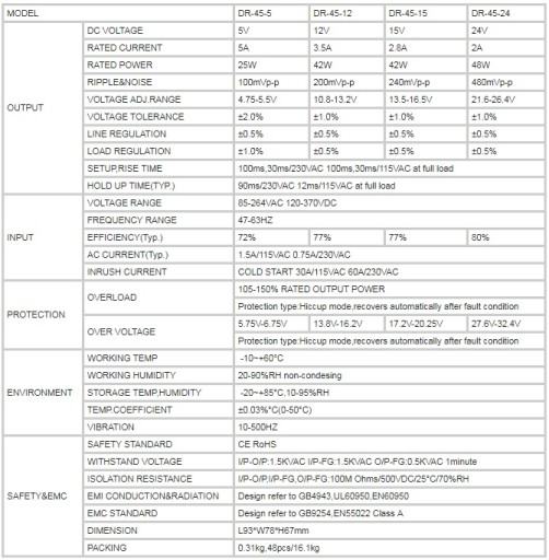 БЛОК ПИТАНИЯ DR-45-12 45Вт 12В DIN LED CCTV RTV