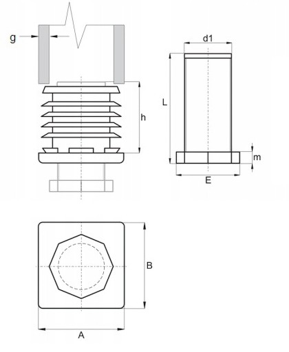 - Stopka regulowana do profili kwadratowych z wysokiej jakości tworzywa