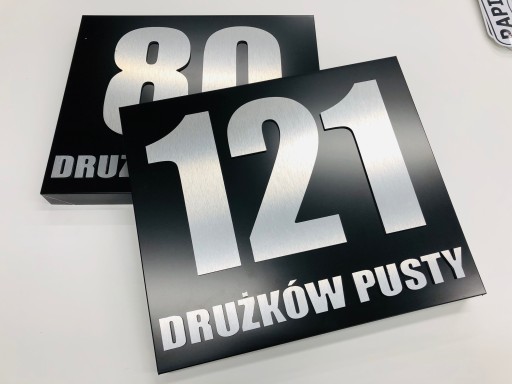 TABLICZKA ADRESOWA DIBOND Z NADRUKOWANYM ADRESEM I WYPUKŁYM NUMEREM 30x20cm + DYSTANSE ALUMINIUM