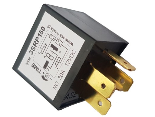 Po pojawieniu się napięcia na wejściu sterującym 1, przekaźnik zewrze styk 3 z 5. Zanik sygnału na wejściu 1 spowoduje powrót styków do stanu początkowego ale dopiero po upływie czasu T (0-1500sec) Jeżeli w czasie doliczonego czasu pojawi się impuls sterujący, przekaźnik zaczyna odliczanie czasu od początku (przedłuża zwarcie styków)