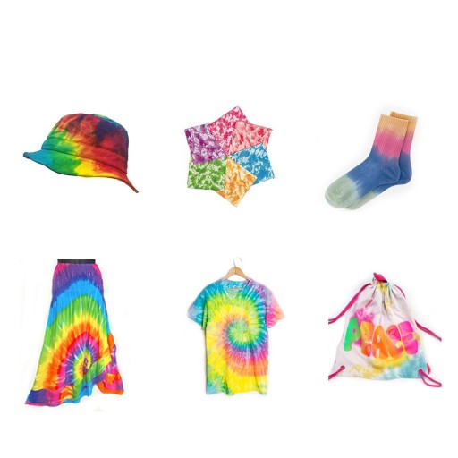 Tie-dye to technika barwienia tkanin, która polega na wiązaniu, zaciskaniu lub skręcaniu materiału w różne sposoby, a następnie nanoszeniu na niego barwników. W wyniku tego procesu powstają charakterystyczne, abstrakcyjne wzory o różnorodnych kolorach i rozmytych granicach, dając unikalne i artystyczne efekty na tkaninie.