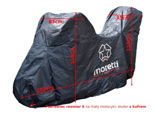 Pokrowiec Motocyklowy MORETTI rozmiar S do motocykli i skuterów z zamontowanym kufrem centralnym