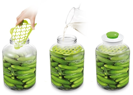 - Utrzyma ogórki, warzywa, camembert, utopence itp. podczas kiszenia pod poziomem zalewy.