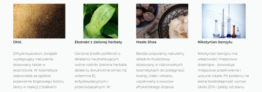 Pojawiający się silny efekt mrowienia i zaczerwienienie skóry ma charakter przejściowy i ustępuje, po ok. godzinie od aplikacji. Działanie to poprawia ukrwienie, dotlenienie i pozwala uzyskać jeszcze silniejszą opaleniznę.