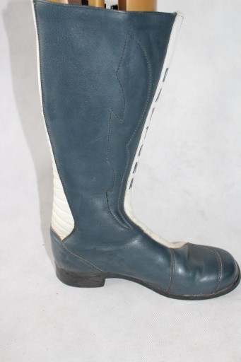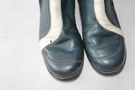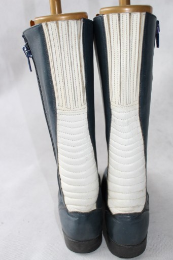 Skórzane buty zapinane na zamek, wewnątrz skórka, usztywnione palce i pięty, u góry wszyte gumeczki- używane stan dosyć dobry- normalne ślady użytkowania- zdjęcia. WYMIARY dł wkładki około- 25 cm, wysokość- 37 cm, szer u góry- 36 cm.