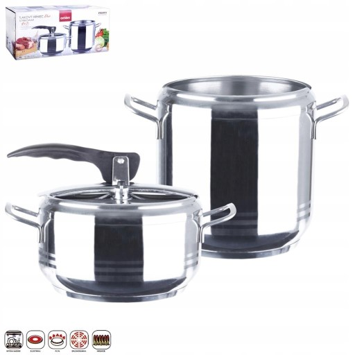 - Zestaw zawiera 2 naczynia + 1 pokrywa szybkowara.