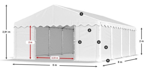 Промышленная палатка 5х8м 2-2,91м для складского помещения