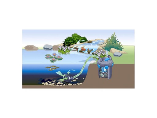 - Gwarantuje czystą wodę w stawie dzięki połączeniu mechaniczno-biologicznego oczyszczania oraz efektywnej techniki UVC