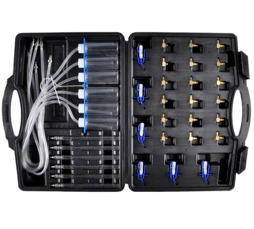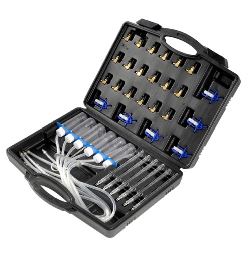 Zestaw składa się z 31 elementów, w tym: z czterech rodzajów adapterów do podłączania do wtryskiwaczy, sześciu próbników oraz listwy probierczej z przewodami umożliwiającymi podłączenie do wtryskiwaczy umieszczonych w trudno dostępnych miejscach.