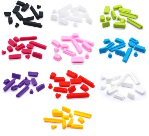 Zatyczki antykurzowe na porty zapobiegają dostawaniu się zanieczyszczeń gdy nie są używane. Do wyboru 10 kolorów: czarny, przeźroczysty, biały, jasny różowy, ciemny różowy, jasny niebieski, zielony, fioletowy, żółty, czerwony.