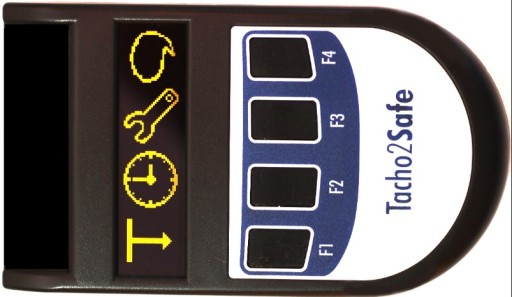 Po podłączeniu do tachografu przyciski (F1, F2, F3, F4) umożliwia wygodną konfigurację Tacho2Safe.
