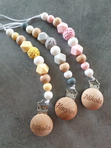 Zawieszki do smoczka drewniano sylikonowa, z imieniem lub dowolnym tekstem.