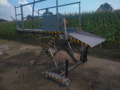Podnosnik jest w 100% sprawny,mobilny zasilany elektrycznie 230V lub można go obsługiwać manualnie