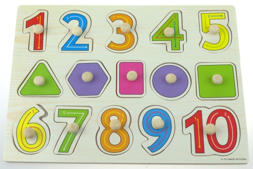 Każdy klocek element posiada uchwyt w kształcie pinezki ułatwia maluchowi układanie poszczególnych elementów