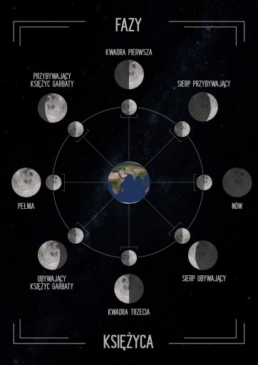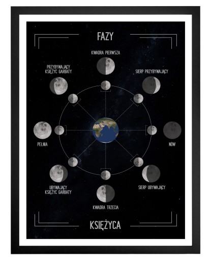 PLAKAT A3 FAZY KSIĘŻYCA w CZARNEJ RAMCE (33X43CM)