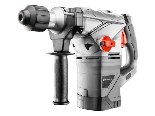 Specjalistyczny 3-funkcyjny młot udarowy SDS+ GRAPHITE o mocy 1500W, niezastąpiony podczas prac instalacyjnych i rozbiórkowych. Posiada bardzo wydajny udar pneumatyczny, możliwość wiercenia, wiercenia z udarem oraz funkcję podkuwania, przydatną podczas skuwania powierzchni otynkowanych, cegieł czy też płytek ceramicznych. Energia udaru 4,5 J daje urządzeniu zdecydowaną przewagę podczas pracy z materiałami, takimi jak beton, cegła, czy kamień. Młot posiada specjalny system amortyzacji rękojeści głównej. Dodatkowo rękojeść została pokryta materiałem antypoślizgowym. Maksymalna częstotliwość udaru przy nominalnej prędkości obrotowej wynosi 3200 w ciągu minuty. Maksymalna ilość obrotów podczas standardowego wiercenia to 750 obrotów na minutę. Mechanizm młota został zabezpieczony sprzęgłem przeciążeniowym, chroniącym użytkownika przed przypadkowym zablokowaniem wiertła. Obudowa przekładni urządzenia wzmocniona została stopem magnezu.