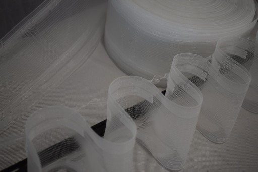 Oferujemy Państwu dodatek do firan i zasłon taśmę transparentną = żyłkową o szerokości 10cm marszczącą w tzw SYSTEM WAVE