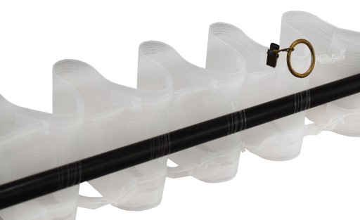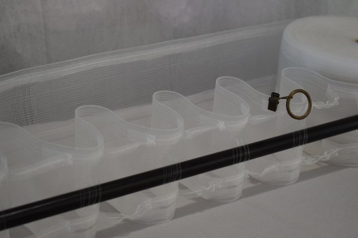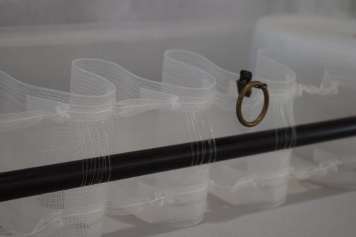 Przy odpowiednim zmarszczeniu powstaje kieszonka umożliwiająca zamontowanie firany żabkach