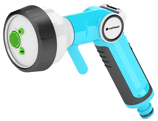 Wysokiej klasy, ergonomiczny, wielofunkcyjny zraszacz pistoletowy z bezstopniową regulacją strumieni.