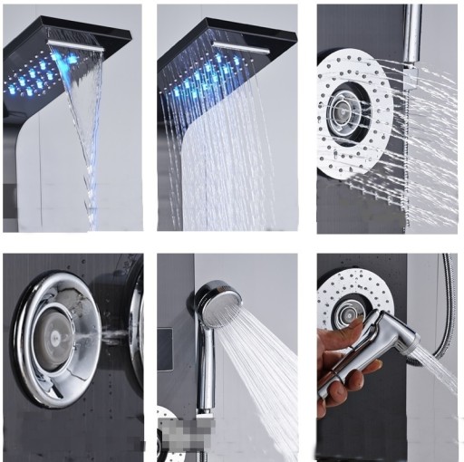 To ekskluzywny, stylowy, nowoczesny panel prysznicowy z hydromasażem, wodospadem, deszczownicą i diodami LED .