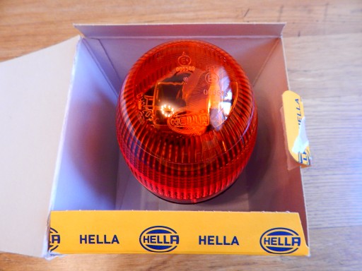 Oryginalna obrotowa lampa ostrzegawcza marki Hella, zapakowana w oryginalne pudełko.