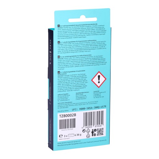 Tabletki Bosch Siemens TZ80002 TCZ8002 odkamieniają ekspres i chronią go przed uszkodzeniami spowodowanymi osadzaniem się kamienia.