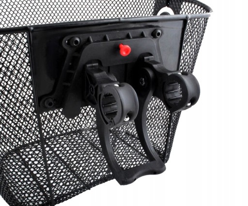 - Kosz rowerowy wykonany z metalowej, czarnej siatki. Kosz montuje się do kierownicy za pomocą uchwytu szybko mocującego typu "CLICK".