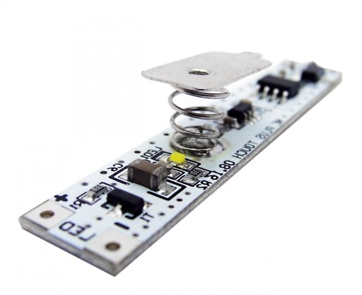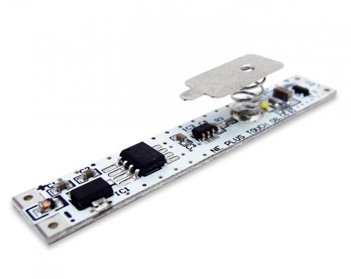 Włącznik TOUCH ze ściemniaczem PWM 12/24V DC przeznaczony do taśm jednokolorowych LED. Włącznik sprawdza się przy ich montażu do profili aluminiowych LUMINES o wymiarach wewnętrznych powyżej 10 mm. Włącznik może być zamontowany w profilu za kloszem, ze względu na charakterystykę załączania przez dotknięcie w miejscu blaszki. Miejsce, w którym znajduje się blaszka, oświetla jedna dioda LED