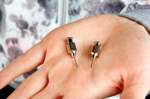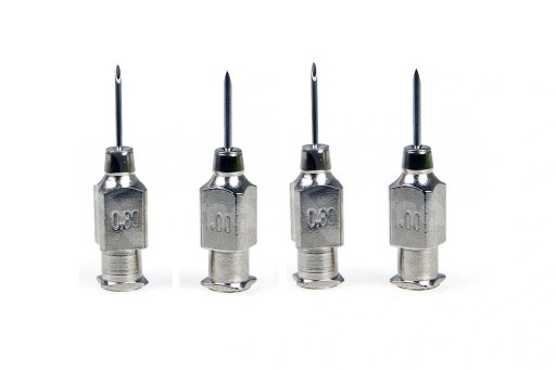 ➡️ Do strzykawki dokładamy 4 igły wielokrotnego użytku:
