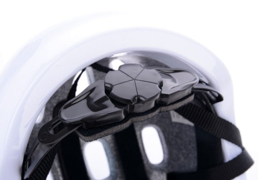 Wyposażony w pasek napinający z pokrętłem, daje możliwość indywidualnego dopasowania kasku do głowy.