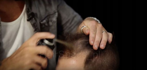 Uwaga: Nie spryskuj włosów aż do momentu zamaskowania wszystkich przerzedzeń, gdyż niepotrzebnie zużyjesz zbyt dużo kosmetyku, a efekt wcale nie musi być lepszy.
