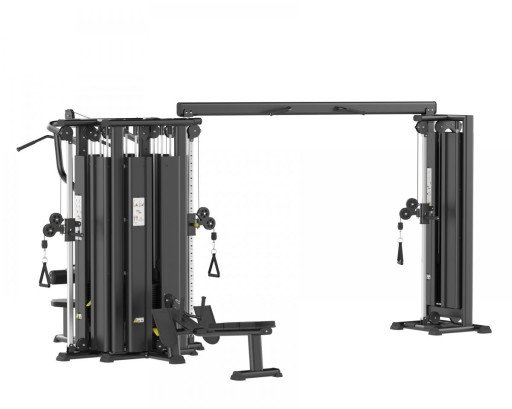 Wielofunkcyjna maszyna siłowa pozwalająca ćwiczyć 6 osobom jednocześnie, składająca się z dwóch stacji linowych, stanowiska do tricepsu oraz wyciągu dolnego i górnego.