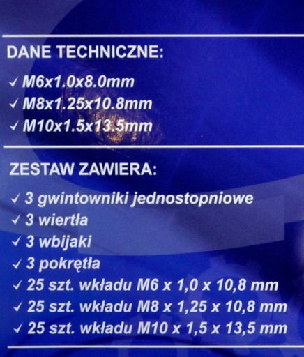ZESTAW DO NAPRAWY ZERWANYCH GWINTÓW 88SZT