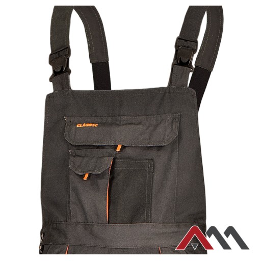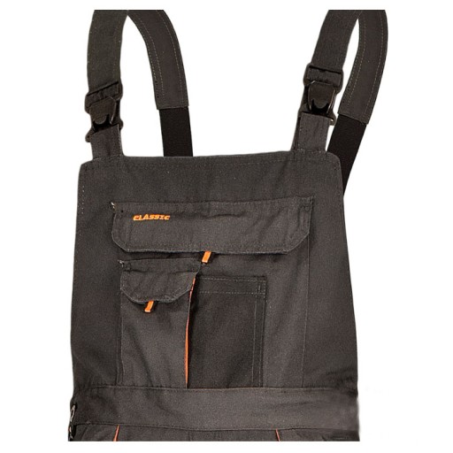 Spodnie robocze ogrodniczki classic – atrakcyjne wzornictwo i doskonała funkcjonalność. Wykonane z bardzo wytrzymałej specjalistycznej tkaniny - płótno (80% poliestru i 20% bawełny) o bardzo wysokiej gramaturze 270+/-10 gram/m2.